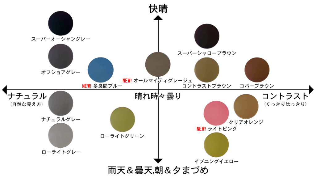 さらに、肝心なレンズカラーも他のメガネ屋さんで取り扱いされている伊藤光学社製偏光レンズ「RARTS(アーツ)」とは全く異なる釣りに特化したオリジナルカラーを採用。 豊富なバリエーションの中から最適なカラーをお選びいただけます。