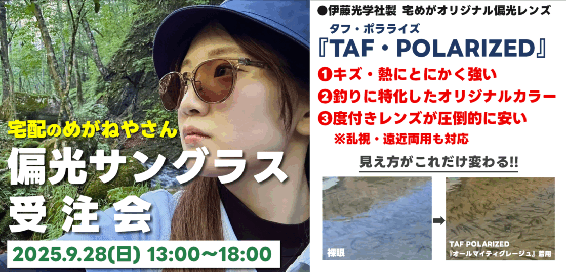 そんな重宗氏オススメのレンズが、多くのプロアングラーも愛用している伊藤光学社製宅めがオリジナルレンズ『TAF・POLARIZED(タフ・ポラライズ)通称:タフポラ』 ※詳細は公式ホームページにて