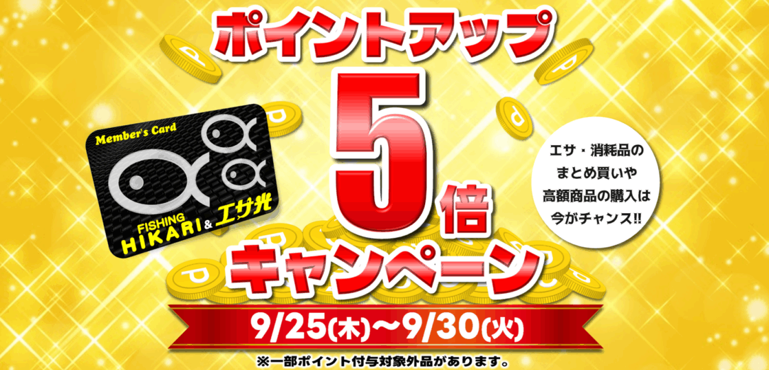 9/25(木)~9/30(火)の期間『ポイント5倍キャンペーン』を開催します!!