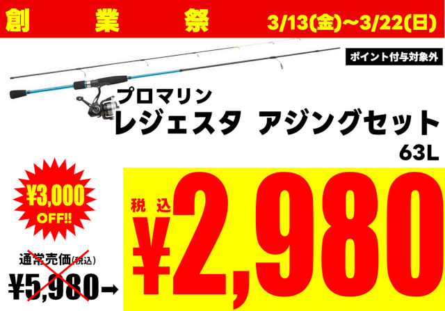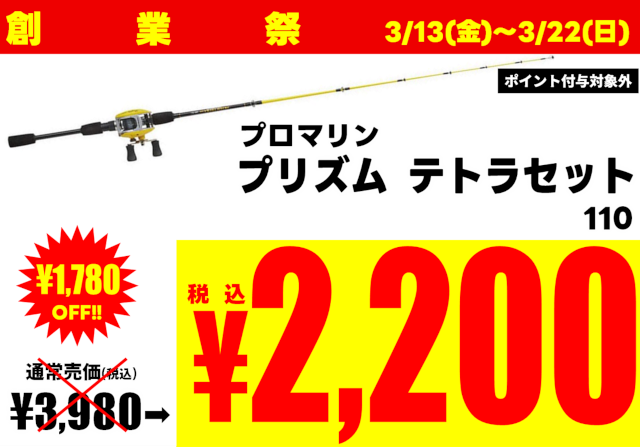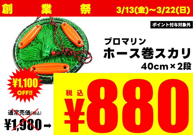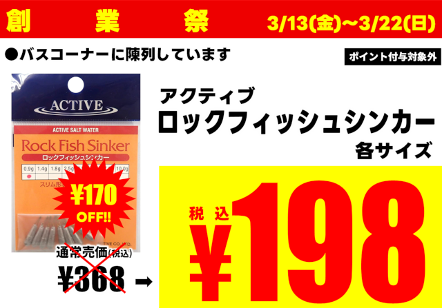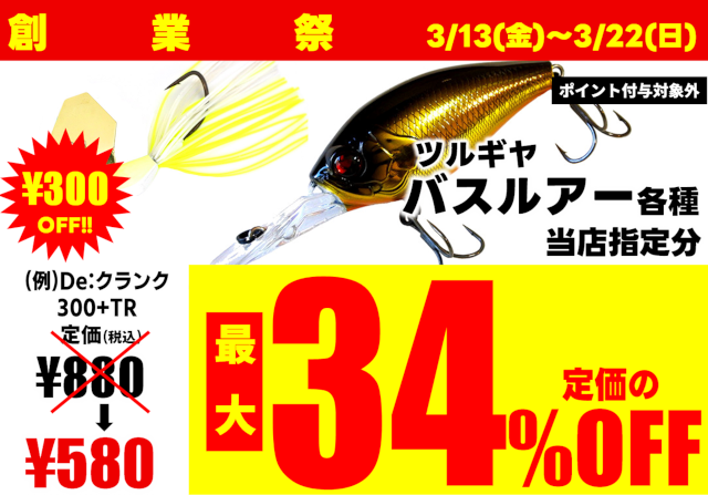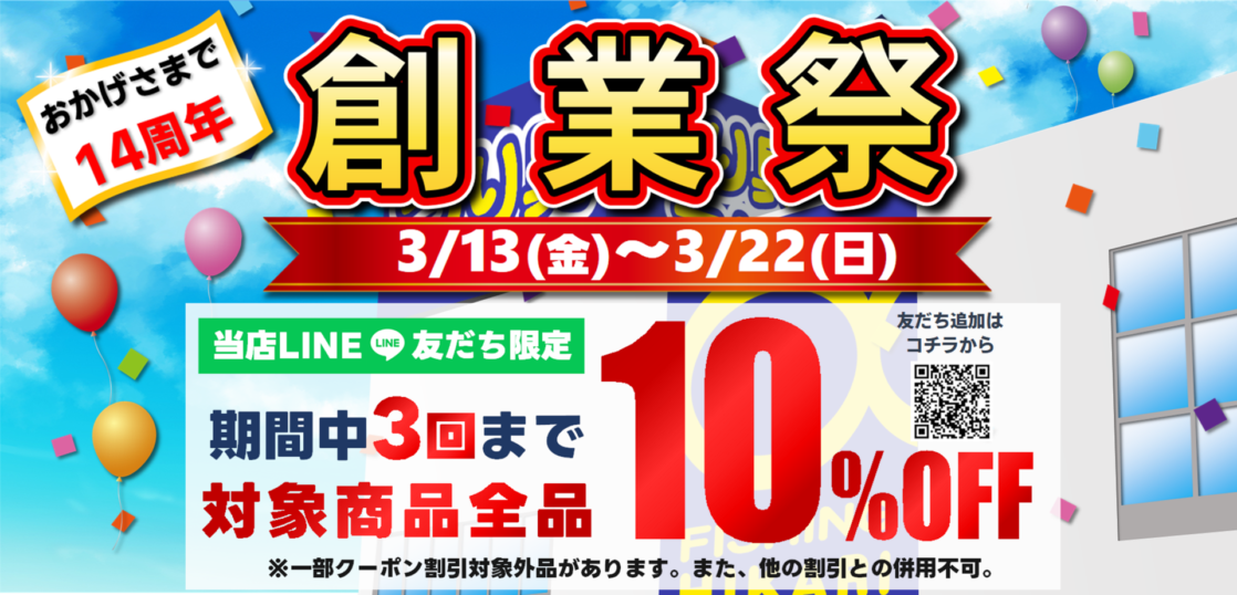 そんな日頃のご愛顧に感謝して、3/13(金)~3/22(日)の期間『フィッシングヒカリ創業祭』を開催いたします。