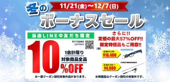 11/21(金)~12/7(日)の期間『冬のボーナスセール』を開催します!! 期